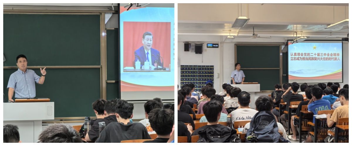 10月8日下午,谢炯标以“学习贯彻党的二十届三中全会精神 立志成为担当民族复兴大任的时代新人”为题,为2023级计算机类7班、2023级食品营养与健康1班全体同学授课。他以个人成长经历与生活感悟为引子,阐述了改革开放的重大时代意义和深远历史影响,介绍了党的二十大以来党和国家事业取得的重大成就,同时对党的二十届三中全会精神的深刻内涵与时代价值进行了全面剖析。他着重指出,作为新时代青年学子,不仅要深刻理解习近平总书记在党的二十届三中全会上的重要讲话精神的精髓要义,更要将其内化于心、外化于行,与祖国同奋进共成长,为实现中华民族的伟大复兴贡献自己的青春力量。授课过程既亲切又富有感染力,同学们纷纷表示,将认真学习领会党的二十届三中全会精神,以更加饱满的热情和坚定的信念,积极投身到全面建设社会主义现代化国家的伟大事业中去,努力成为担当民族复兴大任的新时代青年。
