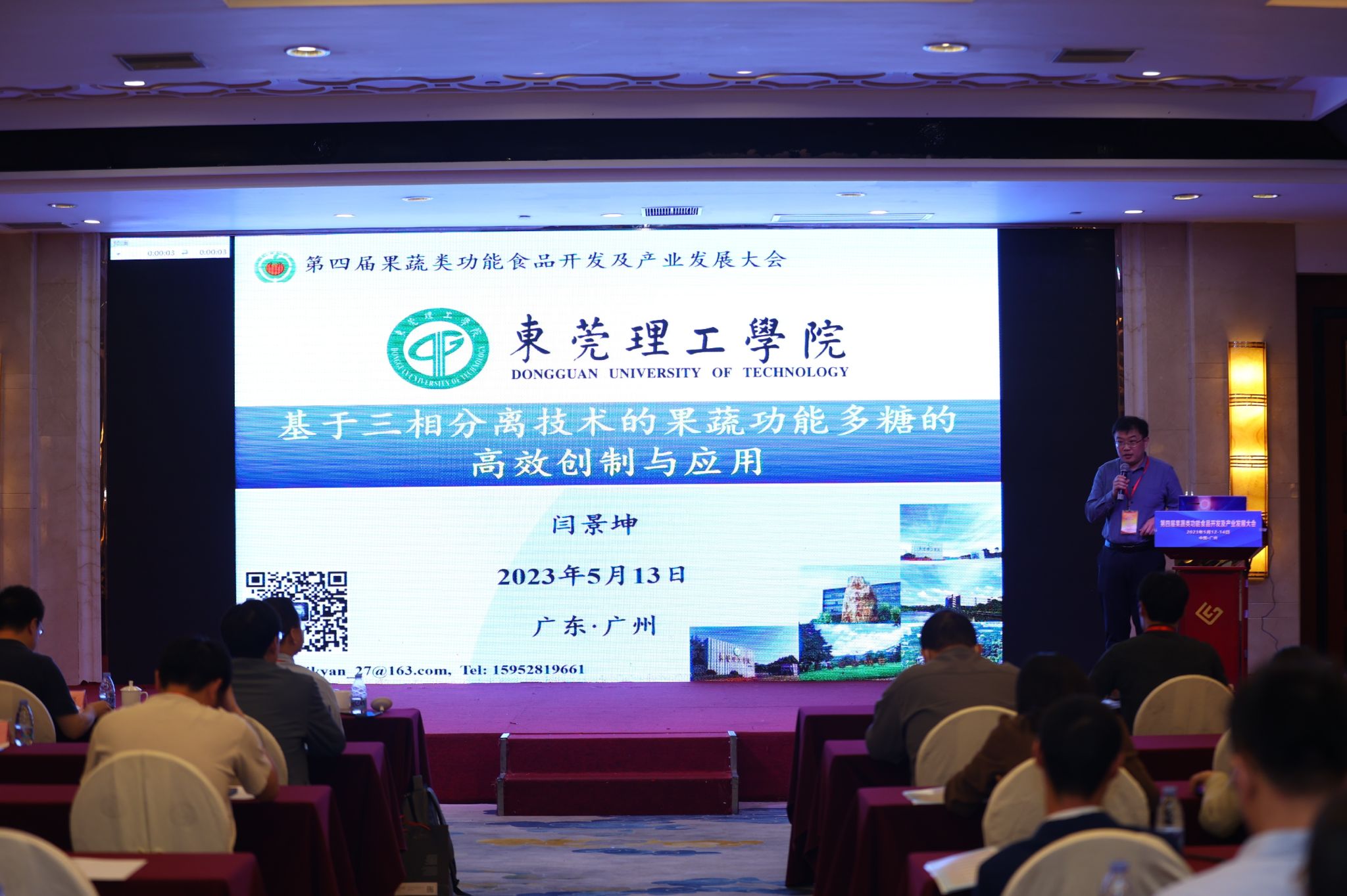 闫景坤副经理在“果蔬营养与健康”专题会议上作了“基于三相分离技术的果蔬功能多糖的高效创制与应用”的报告,并与参会专家、企业家展开了热烈的讨论和交流。