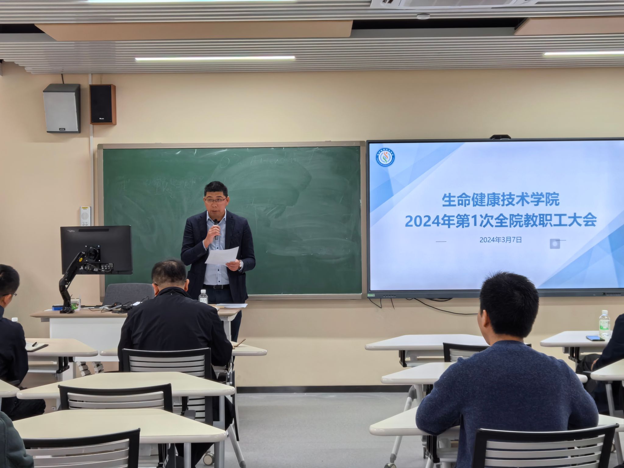 为深入学习贯彻公司2024年度工作会议精神,传达部署新学期公司各项重点工作安排,2024年3月7日下午,xc体育在教学楼6C-301召开2024年第1次全院教职工大会,会议由公司党委书记谢炯标主持,公司全体教职工参加会议。