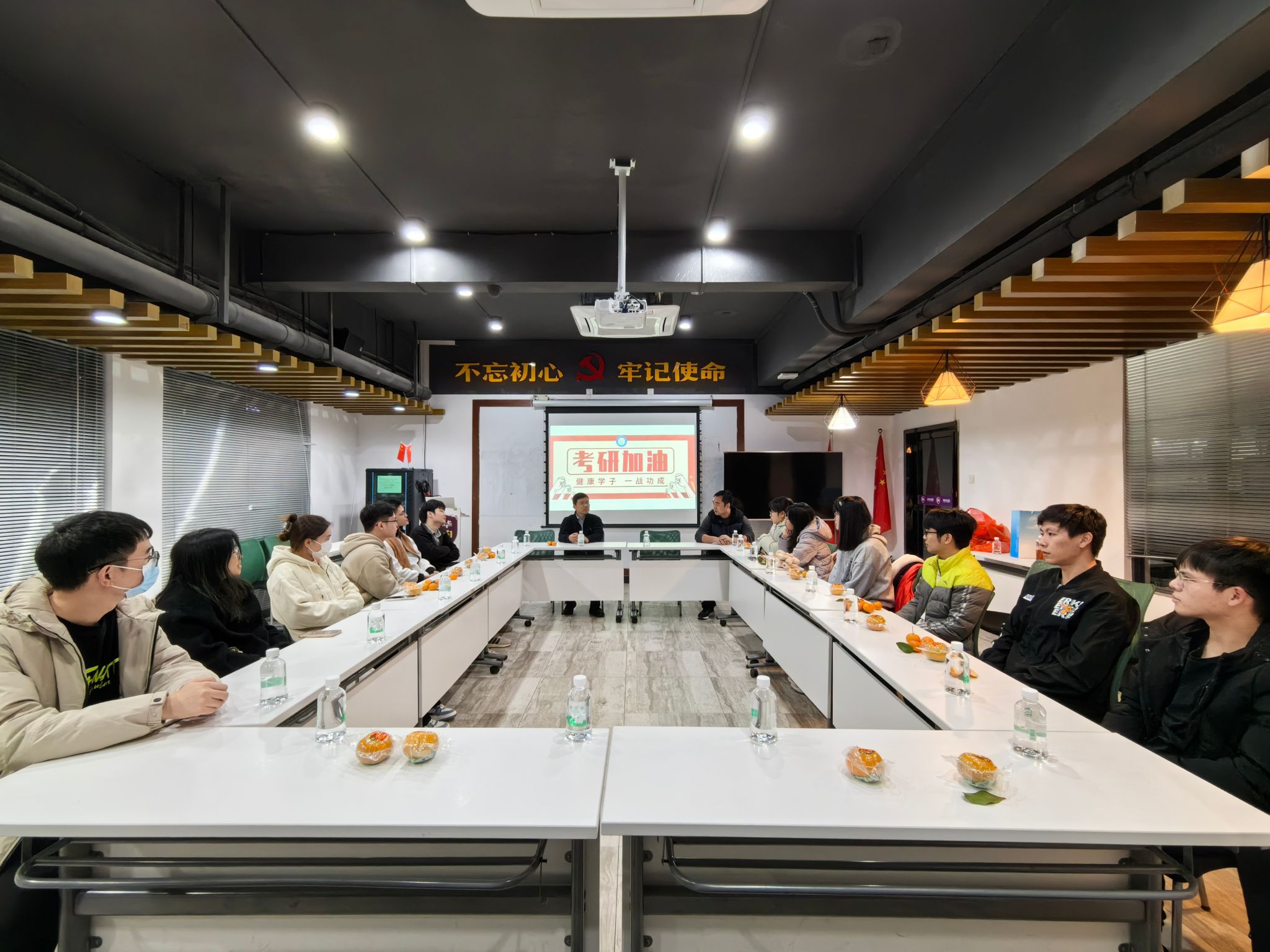 在2024年研考即将到来之际,为鼓舞考研学子士气,增强考试信心,缓解备考压力,12月18日,xc体育在莞华社区活动室开展2024届考研加油活动。活动由公司党委副书记葛金虎主持,毕业班班主任肖珊、刘宇佳,辅导员杨梅青、刘文渊出席,为考研学子送上暖心祝福。
