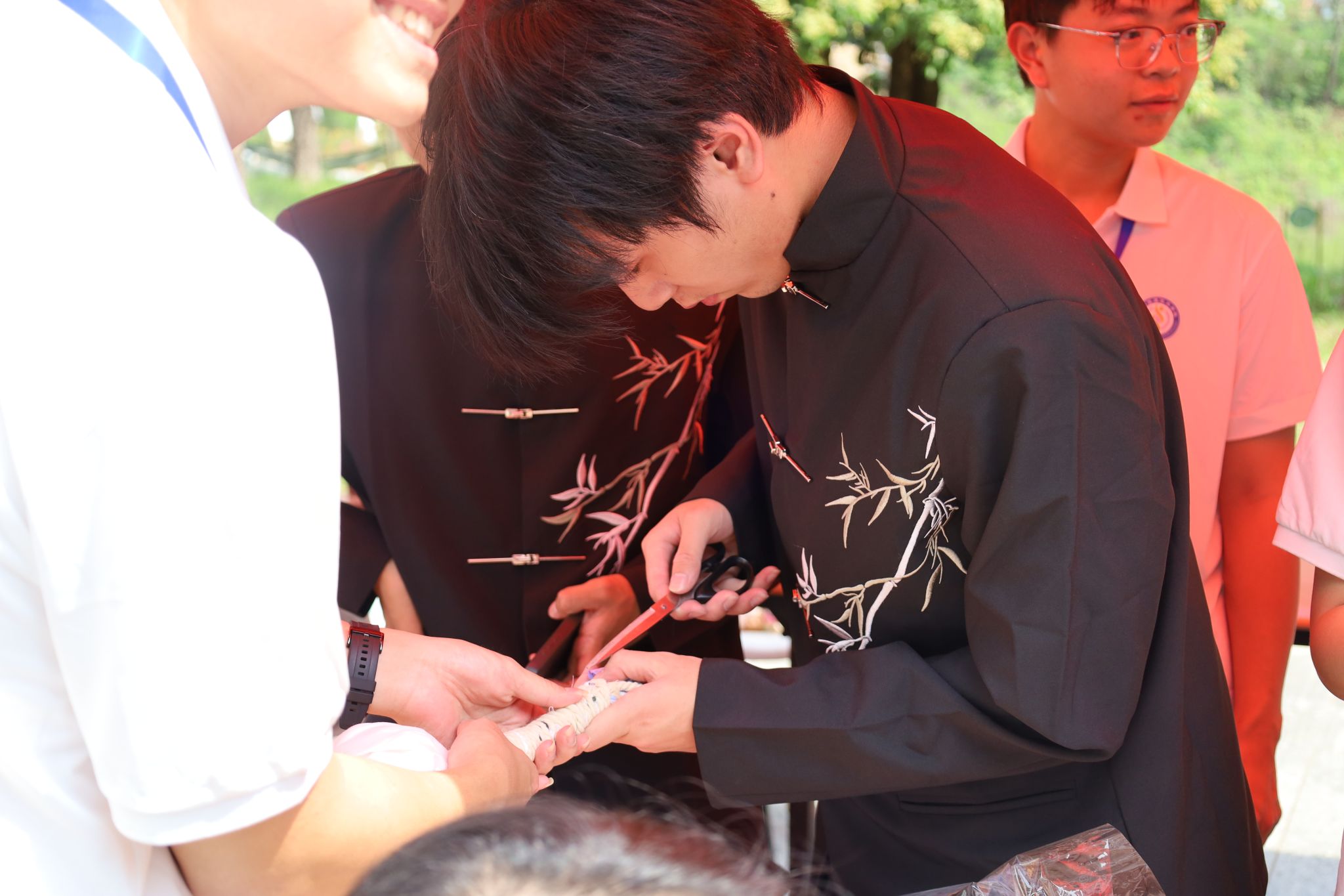 活动当天,现场热闹非凡,参与者们热情高涨。公司在传统文化游园会摊位设置了艾草锤DIY制作体验和中医养生知识小问答两个环节,吸引了广大师生的积极参与。在艾草锤DIY制作体验区,同学们亲手制作艾草锤,不仅深入了解了艾草的独特功效,还增强了动手能力,现场洋溢着欢乐的气氛。与此同时,中医养生知识小问答环节也备受青睐。答题互动体验区气氛热烈,现场同学通过趣味问答的形式,对八段锦和中草药有了更深入的了解,既收获了知识,又增添了乐趣。